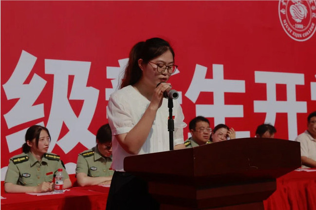 优秀学生代表2020级商学院国际经济与贸易专业占敏萱同学与所有新生分享了这四年来在紫金校园学习、生活的点点滴滴。她有三个关键词送给新同学:学习、尝试、减法。期待同学们与梦想双向奔赴,在“励学笃行”校训精神的指引下,向下扎根、汲取营养,书写与紫大的独特篇章,成就更卓越的自己、收获更精彩的人生。
