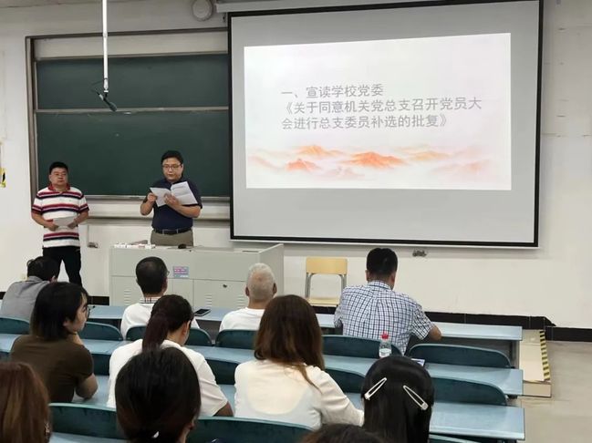 大会在庄严的国歌声中拉开序幕。首先党政办主任、机关总支组织委员强劲宣读了学校党委关于同意机关党总支召开党员大会进行总支委员补选的批复。