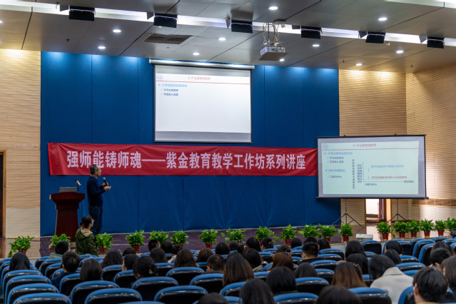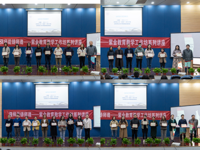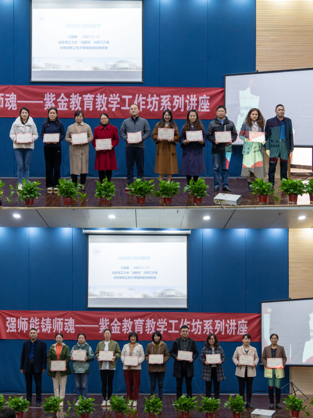 11月15日下午,紫金教育教学工作坊系列讲座暨新进教师教学过关证书颁发仪式在小报告厅举行。本次讲座特邀南京理工大学王建新教授作题为“如何进行有效教学”的主旨报告。陆汉栋副校长,教务处及各分院主要负责人出席活动,全体教师到场参加。大会由教务处陈琳琳处长主持。