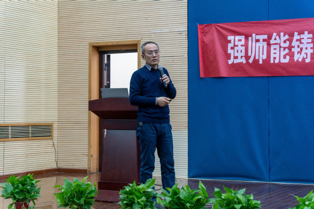 随后,南京理工大学电光学院王建新教授就如何进行有效教学作主旨发言。王教授结合自身多年的教学实践经验,围绕什么是有效教学和如何进行有效教学展开论述,着重介绍了如何进行有效教学的思路和做法。王教授指出,有效教学的实施有赖于多方面的持续深耕,在教学前要时常借鉴他人经验,教学中要运用混合式教学法,注重知识的关联性、应用性,并适时采用团队协作学习,教学后还要持续不断的反思总结。报告后,与会教师感触良多,受益匪浅,纷纷提出在教学中的难点与痛点,与王教授交流研讨。