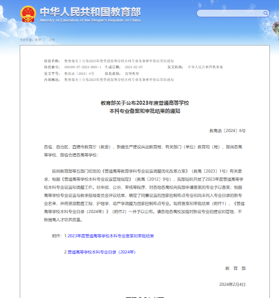 近日,教育部网站公布了新设专业备案和审批结果。根据《教育部关于公布2023年度普通高等学校本科专业备案和审批结果的通知》(教高函〔2024〕6号)我校智能制造学院申报的环境设计、计算机与人工智能学院申报的数据科学与大数据技术、人文与社会科学学院申报的翻译和网络与新媒体4个本科专业成功通过审批。这一成果不仅使我校本科专业总数增至39个,而且首次新增艺术类本科专业,体现了学校在专业建设方面的重大突破。