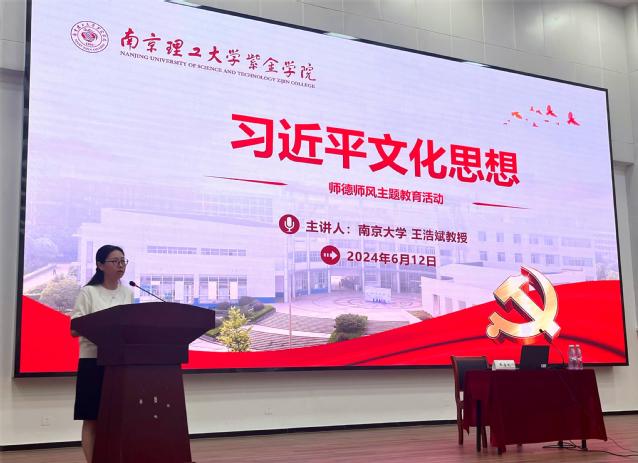 2024年6月12日下午,党委教师工作部特邀南京大学王浩斌教授莅临我校,在国交楼报告厅作题为“习近平文化思想”的主旨报告。报告由党委教师工作部部长陈琳琳主持,各分院(部)全体教师出席。