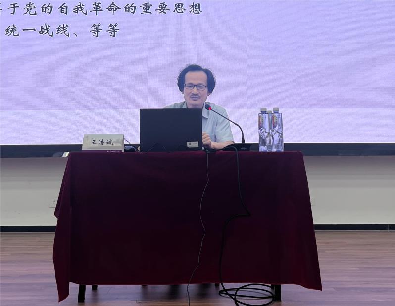 王浩斌教授是南京大学马克思主义学院教授,博士生导师,《南京大学学报》执行主编,主要研究方向是马克思主义哲学与政治经济学、社会理论。他分别从意识形态、文化自信和文化使命三个维度来深度阐述习近平文化思想,从建设文化强国、推动文化繁荣和建设中华民族现代文明三个方面阐释文化使命,从事业发展、国家建设和文明形态三个层面理解文化使命的三个方面。最后,他结合多年教学与科研经验,为在场的全体教师提供并解读了当前与文化思想相关的若干热门选题。整场报告由浅及深,由虚入实,为我们更加科学、系统地理解习近平文化思想做出了正确指引,为教师进一步开展相关教学科研工作提供了宝贵思路。