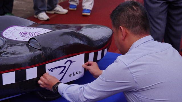 在大家殷切的期盼下,出席活动的各位领导以及蜂鸟车队队长王振宇共同为新车揭幕,黄文涛为新车授予车队队徽。