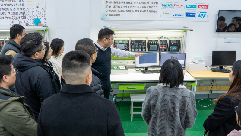 最后,韩满林带领大家参观了智能制造科创实验室,直观展示了学院科研、育人的实践成果。这一环节坚定了企业与学院合作的信心,为产教融合的深化奠定了坚实基础。