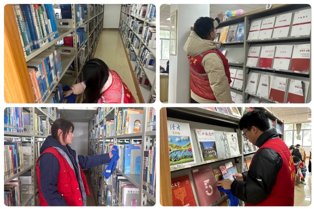 2025年3月5日是毛泽东同志“向雷锋同志学习”题词发表62周年纪念日,也是第26个中国青年志愿者服务日。为彰显“党建引领、服务师生”理念,弘扬“奉献、友爱、互助、进步”志愿精神,营造更加整洁舒适的阅读环境,提升读者的借阅体验,图书馆所属机关第四党支部联合图书馆馆员以及校读协、校青协志愿者们积极开展了“拂尘守书香,共续雷锋情“学雷锋主题党日活动。