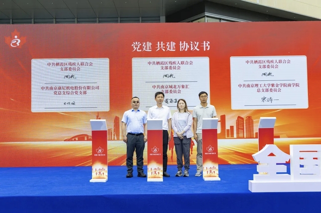 5 月 16日上午,栖霞区举办“党建领航启新程 科技助残促共融”第三十五次全国助残日活动。江苏省残联、栖霞区委区政府、南京市残联相关领导出席。星空彩票娱乐平台登录商学院党总支作为栖霞区残联党建共建单位,党总支书记宋诗一、会计学专业教师郝文及学生代表受邀出席活动并签署党建共建协议。双方将以党建引领凝聚合力,以商科创新服务民生,共同探索“党建+专业+助残”三融共生新模式,助力残疾人事业高质量发展。