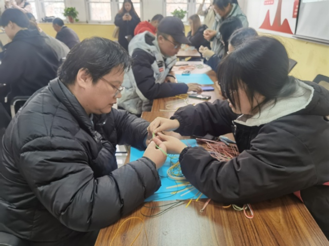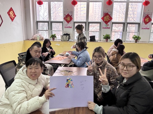 在深化助残服务的同时,商学院将劳动教育融入专业实践,构建“做中学、学中悟”的育人生态。师生党员多次赴“残疾人之家”开展融合实践活动,学生化身“财商讲师”,手把手教授记账技巧;师生与残障人士携手创作衍纸作品,五彩纸条化作象征团结的“同心花”,将劳动成果赠予社区孤寡老人,传递双重温暖。两年间,商学院定期组织学生参与助残实践,将专业课程与残疾人工坊成本管理结合,让学生在实践中理解“专业向善”的意义。