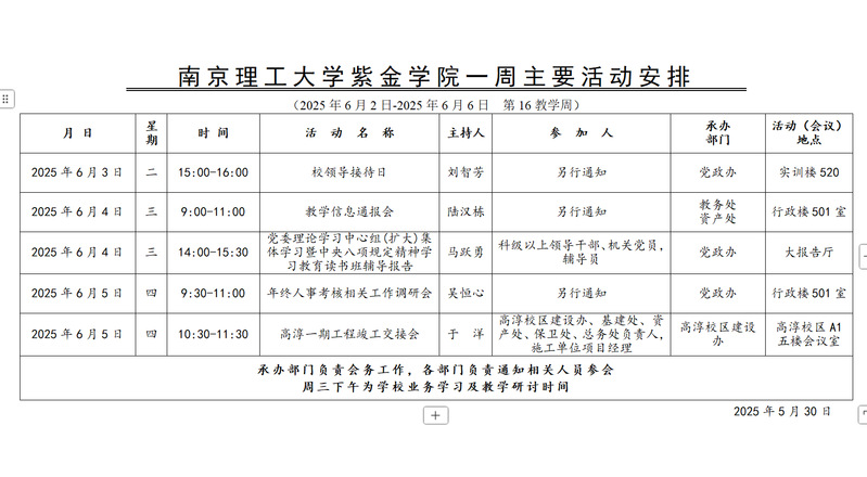学校一周主要活动安排(第16教学周)