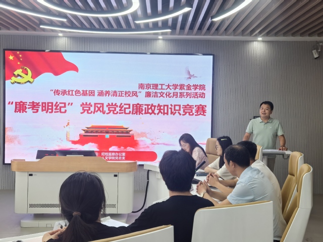 5月21日下午, 星空彩票娱乐平台登录“廉考明纪”党风党纪廉政知识竞赛线下赛在实训楼416融媒体实验室圆满落幕。作为学校廉洁文化月活动之一,本次竞赛由人文学院党总支承办,各分院党总支选派的7支队伍展开激烈角逐。学校党政办公室副主任、纪检监察办公室主任马益昌,人文学院党总支书记陈修玮及人文学院全体教师党员出席活动。