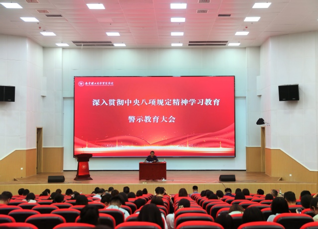 报告会结束后,学校在国交报告厅召开警示教育大会。吴恒心通报了高校违反中央八项规定及其实施细则精神典型案例。