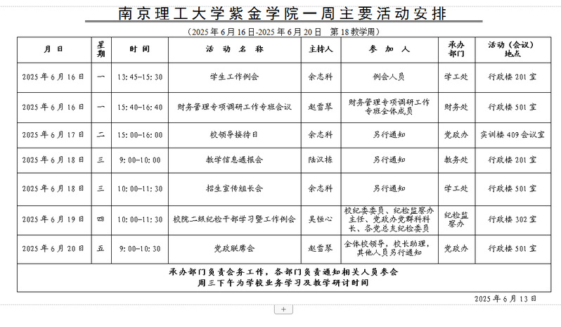 学校一周主要活动安排(第18教学周)