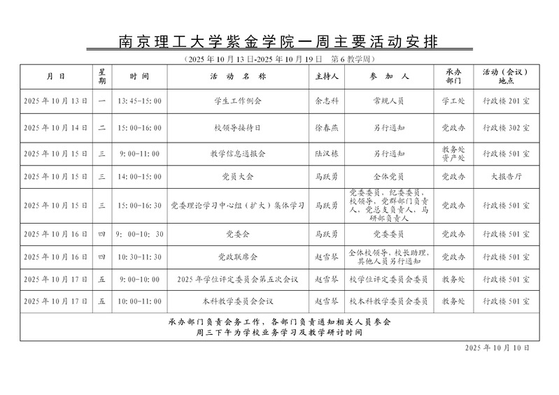 学校一周主要活动安排(第6教学周)