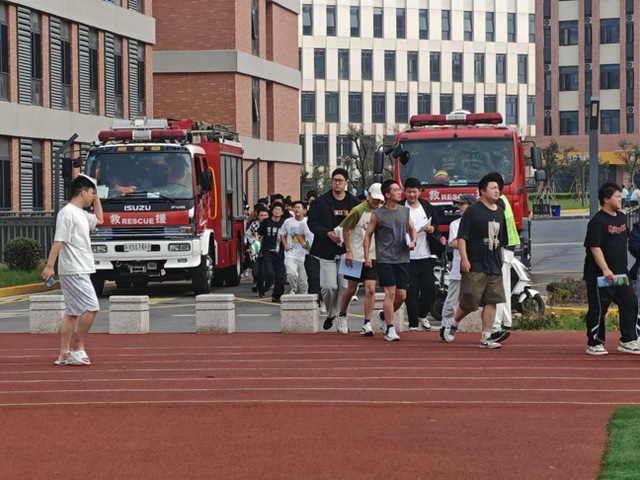 警报声响起,演练正式启动,此时正在宿舍休息的学生们反应迅速,立即蹲伏于桌下、墙角等安全区域,双手紧紧护住头部,做好应急避险准备;疏散信号发出后,辅导员迅速组织学生队伍紧急疏散,大家双手抱头、弯腰低身,沿着学校预先规划的安全通道向操场指定集结点撤离。整个疏散过程紧张有序、衔接顺畅,充分展现了师生们良好的应急素养。
