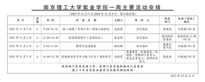 学校一周主要活动安排(第9教学周)