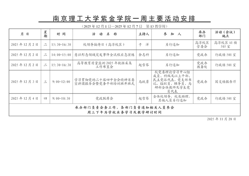 学校一周主要活动安排(第13教学周)
