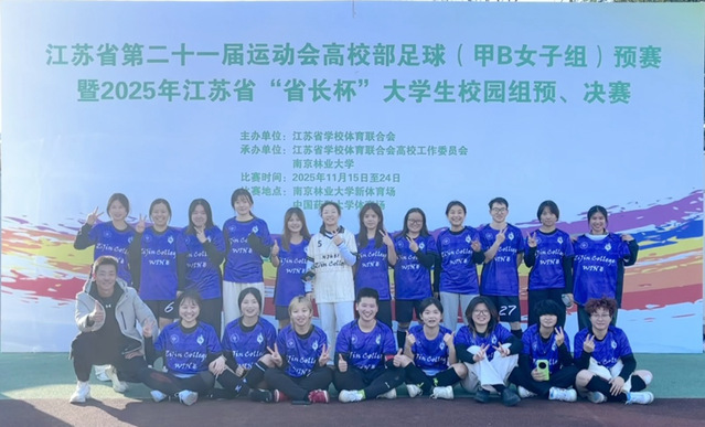 2025年11月23日,江苏省第21届运动会高校部足球(甲B女子组)预赛在南京林业大学落下帷幕,我校女足在小组赛4场比赛中两胜两负,最终排名小组第三,遗憾未能出线参加省运会正赛。虽然未能出线,但紫金女足在赛场上尊重对手、尊重裁判、顽强拼搏、全力以赴的比赛作风获得了裁判组以及组委会的一致认可,并获得了由组委会颁发的“体育道德风尚奖”。