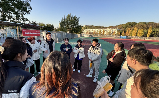 (体育部孙瑞老师在场边布置比赛战术安排)