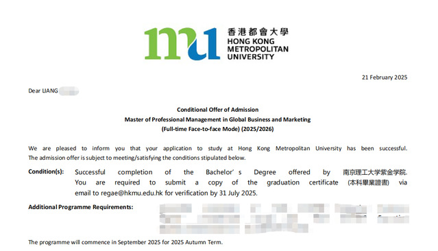 在留学申请的激烈竞争中,每一份offer都来之不易,而南理工紫金学院国教院留服中心,正用专业与匠心,为学子铺就通往世界名校的坦途。今天,我们将走进21级市场营销专业梁同学的申请故事,一同见证平凡起点如何绽放出非凡光芒。