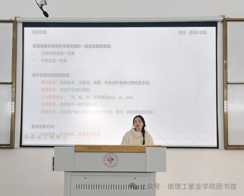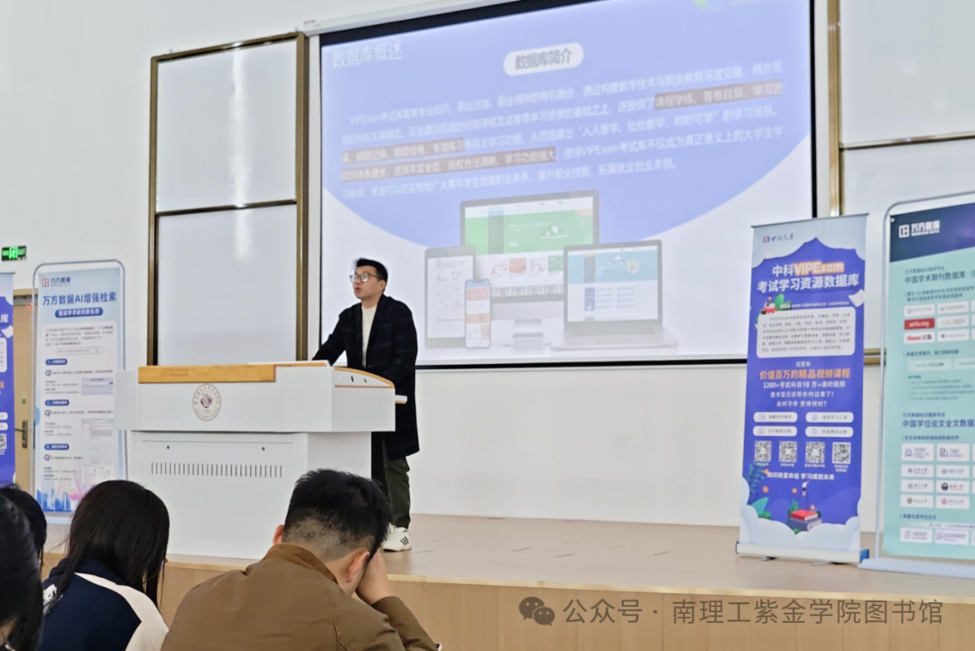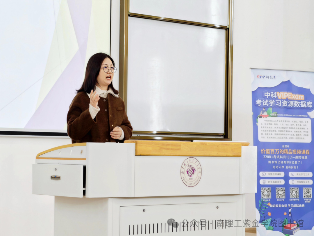 本次讲座针对高淳校区新生辅导员和学生骨干开设,重点介绍了“万方期刊论文数据库”、“中科VIPExam考试学习资源数据库”和“worldlib学科服务群”的使用方法。讲座重点围绕每种数据库的访问方式、服务机制、核心功能进行了细致阐述;并就目录查询、文献传递、知识挖掘、AI检索等专业层面从数据资源整合、关键词提炼、知识阅读服务等角度向读者展开了一幅数字化高效利用图书馆电子资源的智慧图景。