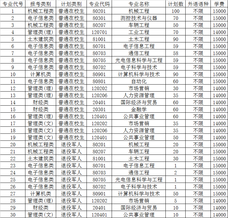 注:(1)学校办学地点为南京仙林大学城文澜路89号,普通类和退役士兵计划专业均在该校区就读。