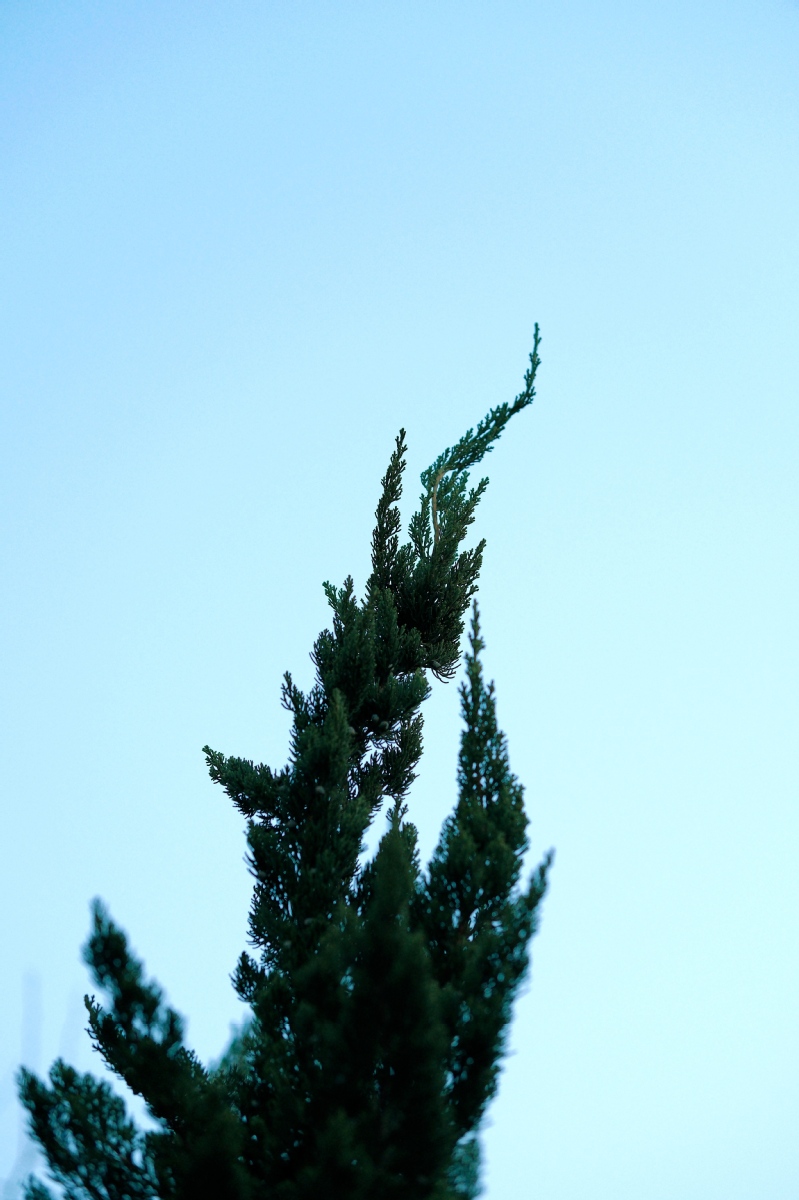 【特征】:树冠圆柱状或柱状塔形;枝条向上直展,常有扭转上升之势,小枝密、在枝端成几相等长之密簇;鳞叶排列紧密,幼嫩时淡黄绿色,后呈翠绿色;球果蓝色,微被白粉。